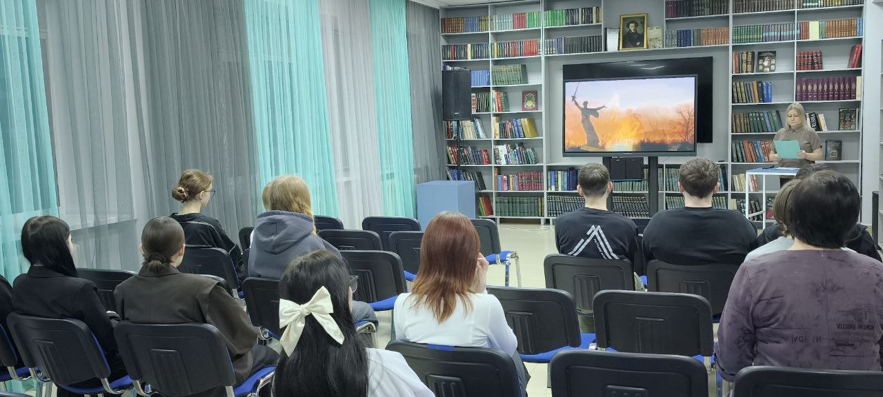 В Центральной библиотеке прошел патриотический час для девятиклассников Варгашинской школы №1. Мероприятие, получившее название «Пусть помнят живые, пусть знают потомки», было посвящено 83-й годовщине победы в Сталинградской битве – одном из самых значимых и кровопролитных сражений Великой Отечественной войны.