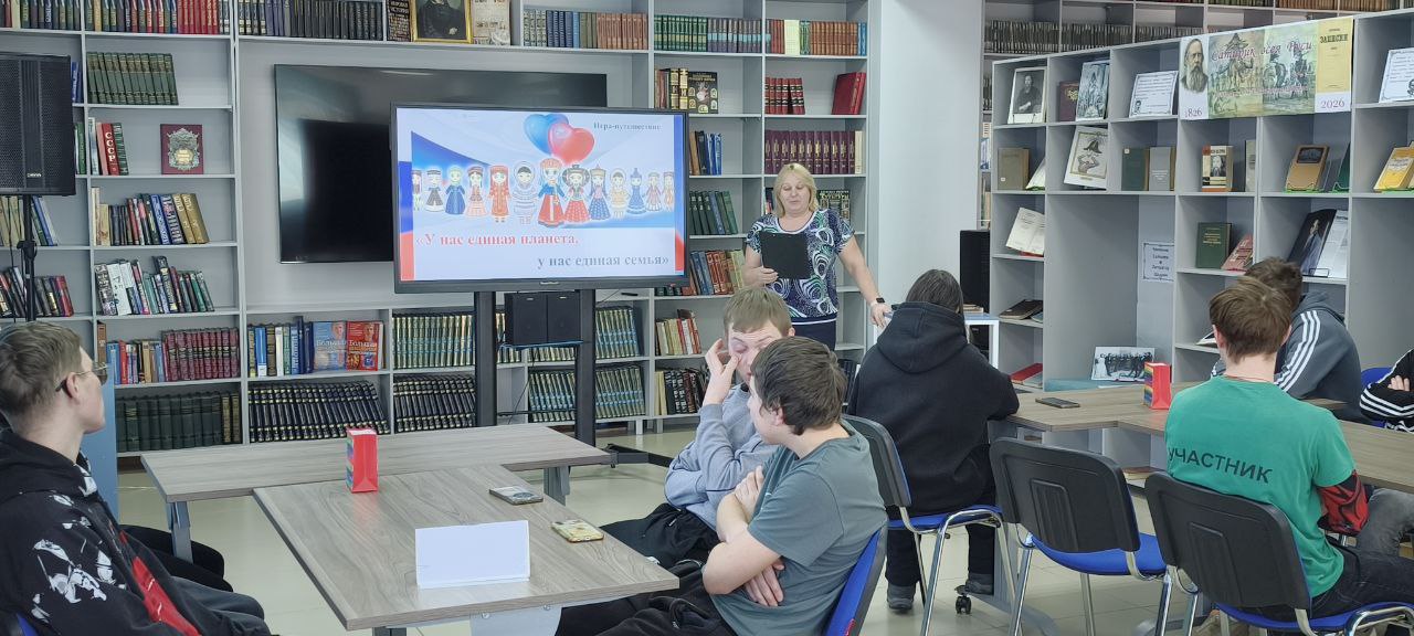 Гостями библиотеки стали учащиеся Варгашинского образовательного центра. Ребята с большим удовольствием участвовали в игре-путешествии «У нас единая планета, у нас единая семья». Мероприятие, направленное на укрепление дружбы между народами и расширение кругозора, прошло в формате увлекательного соревнования, состоящего из четырех тематических конкурсов.